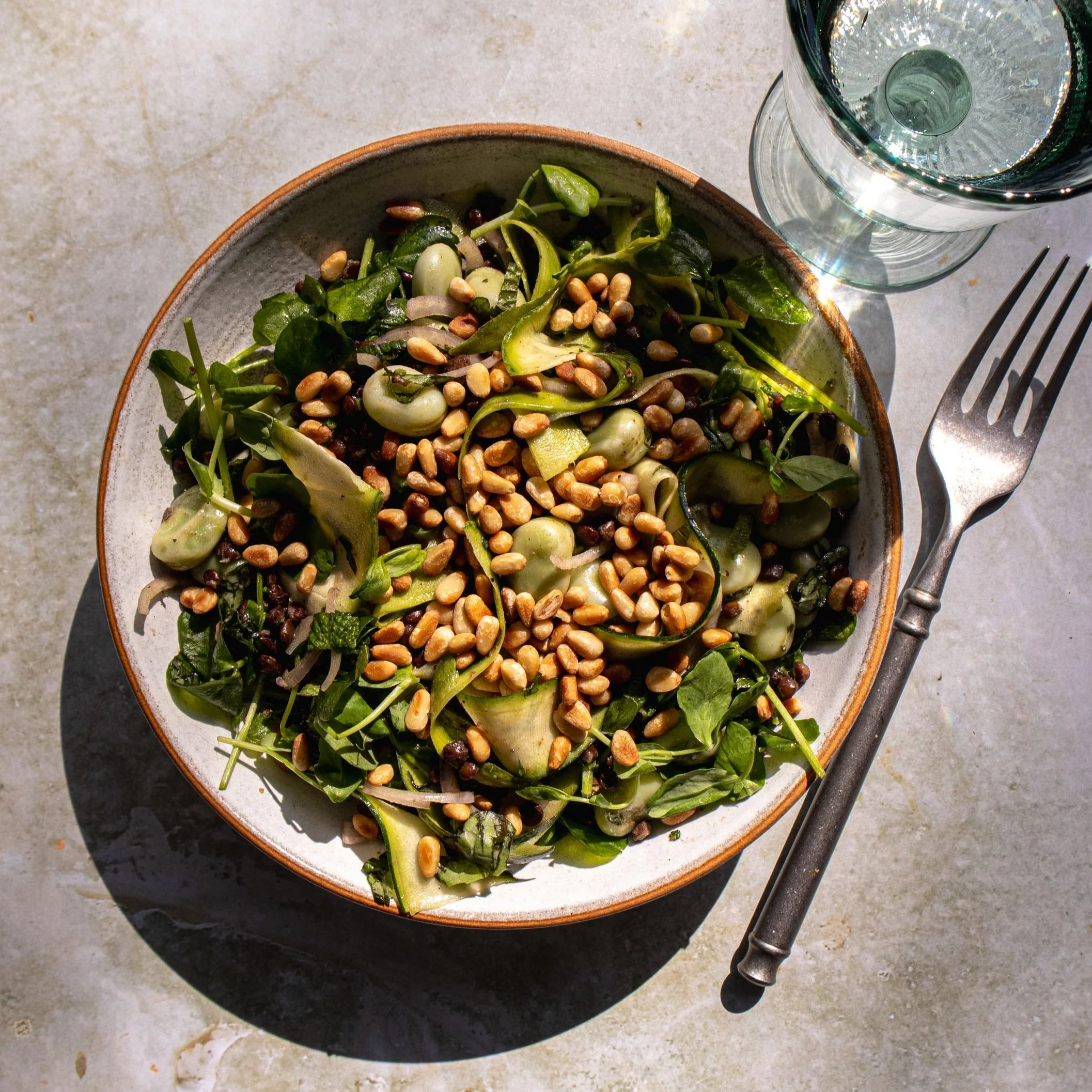 Courgette + Puy Lentil Salad With Roasted Pine Nuts